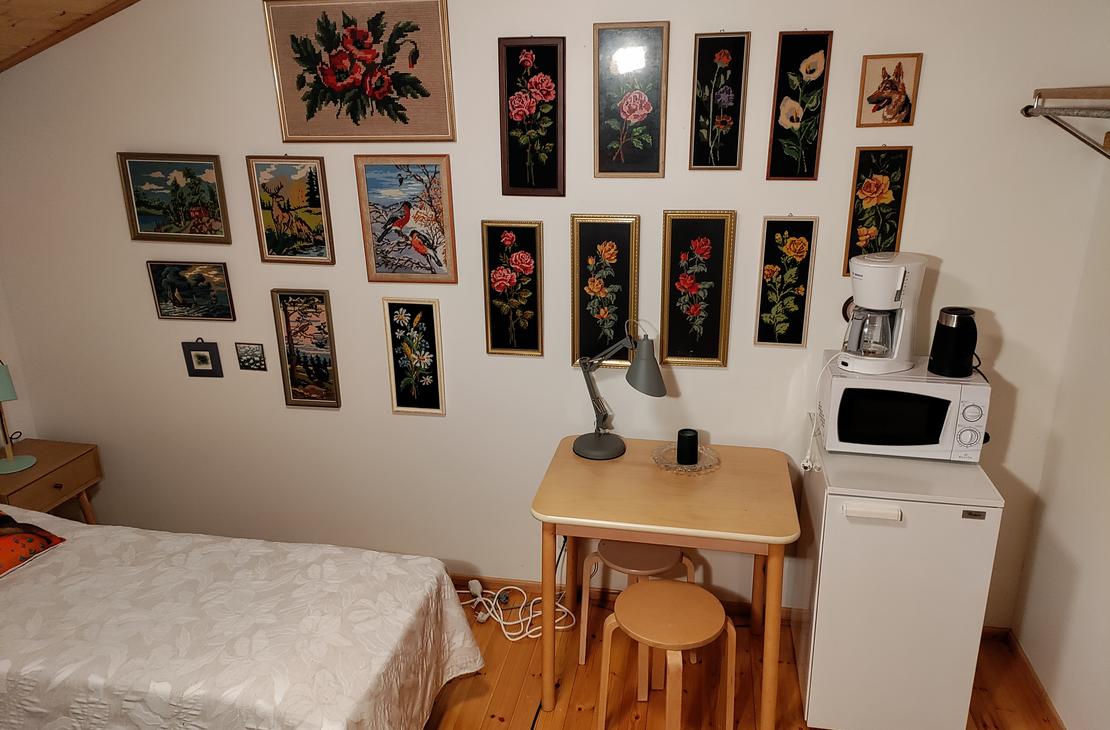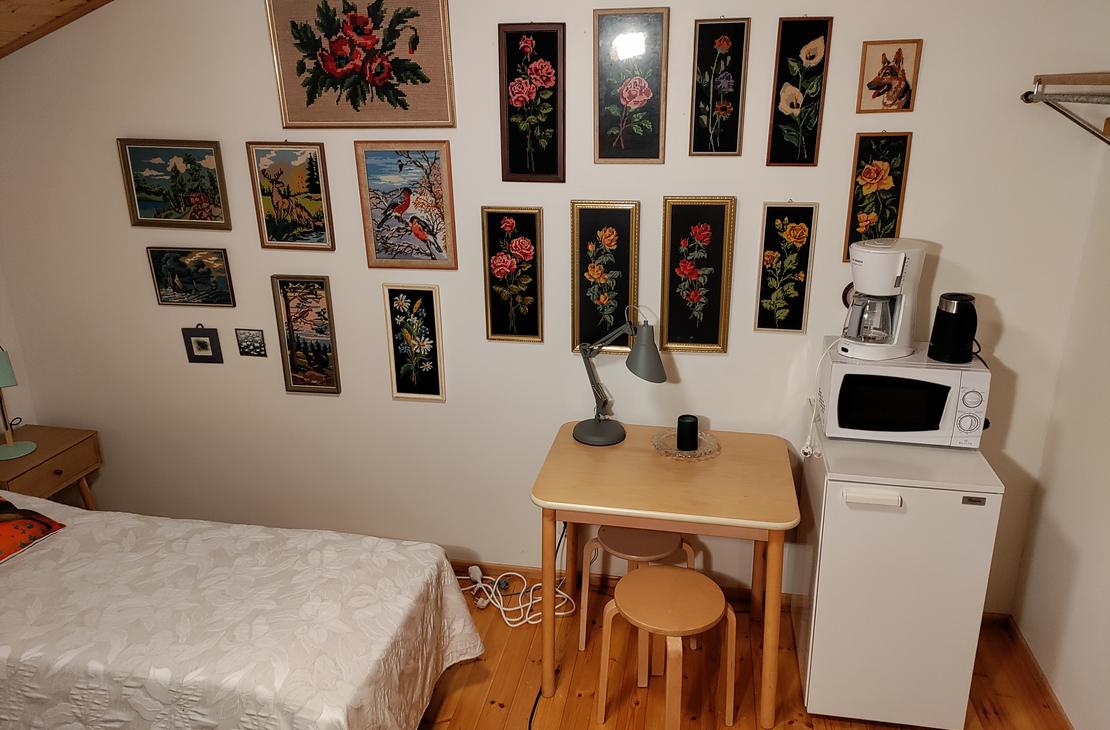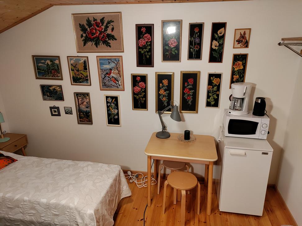 The host and hostess of Jänisvaara wish the guests of the yard a good morning as they wake up from their sweet dreams. From the Luhtiaita, the morning path can take you through the forest to Lake Pielinen for a morning swim or fish, or you can have breakfast at the hut table, the fresh coffee and Karelian pies are already fragrant! To the sandy beach of Lake Pielinen, where you have your own rowing boat and lean-to for use, approx. 1.7 km along the forest path, approx. 4 km by car. There is a refrigerator and electric heating in the barn. A barbecue hut can be used in the yard. The sauna can be used for a small additional fee of €5.00/person/hour.